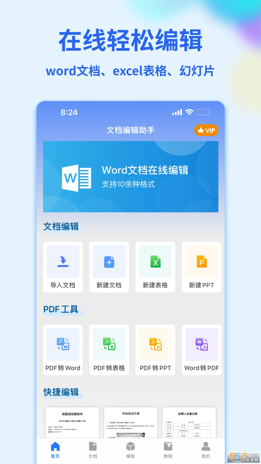 Word手机文档是一款可以在线编辑word、excel和powerpoint的软件。兼容microsoft office、金山文档、wps office,应用内包含在线文档编辑,图文教程、word模板、excel模板等等