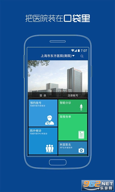《上海市东方医院》是一款官方的移动客户端挂号软件,打造这款新型互联网医院的目的主要是为了让患者就医更加便捷,简化以前繁琐的就医看诊步骤,将医院装到我们的口袋里,生病了不舒服随时都可以打开手机在上面预约时间,不需要提前请好假,预约自己的空闲时间并选择好医生。