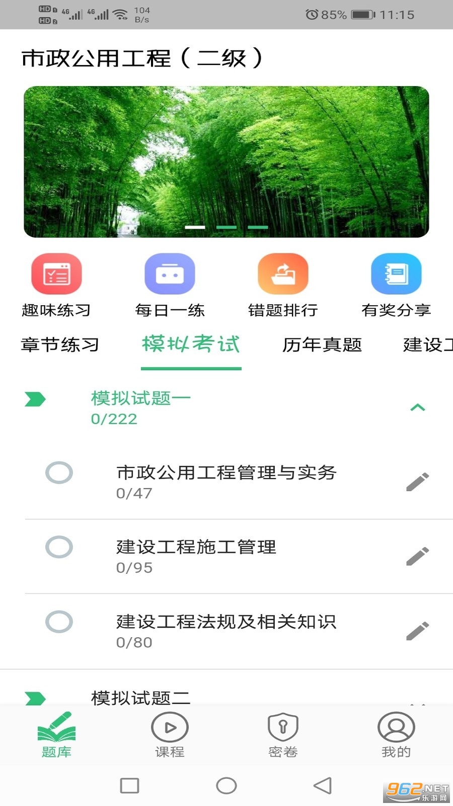 《二级建造师市政公用工程题库》是一款非常给力轻松的学习软件,这里可以学习海量有关二级建造师来进行学习,操作也方便,海量有关学的内容和方法等你来获取,免费学习,感兴趣的朋友还在等什么?欢迎来962下载试试吧!