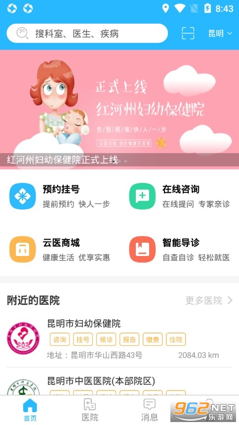 云南省内唯一一款整合医疗资源的APP,整合省内众多三甲医院挂号资源和医生资源,汇集健康资讯、健康知识、预约挂号、诊间缴费、在线问诊于一体。