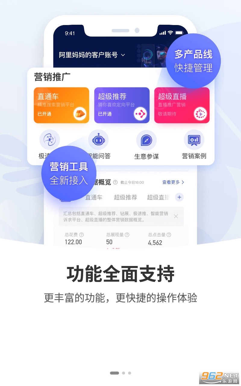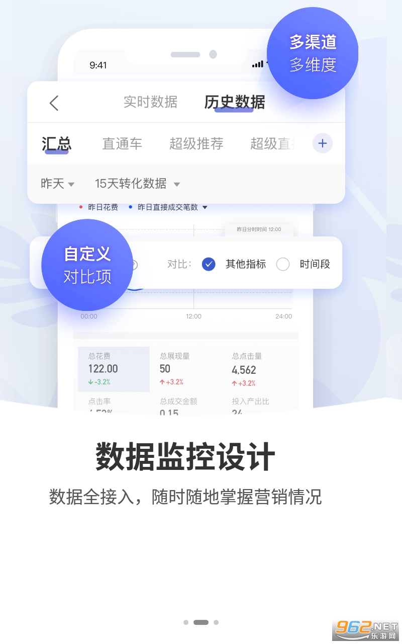 电脑不在身边,随时随地随身查看数据报表、进行关键词改价、分时投放操作,满足日常推广优化的需求