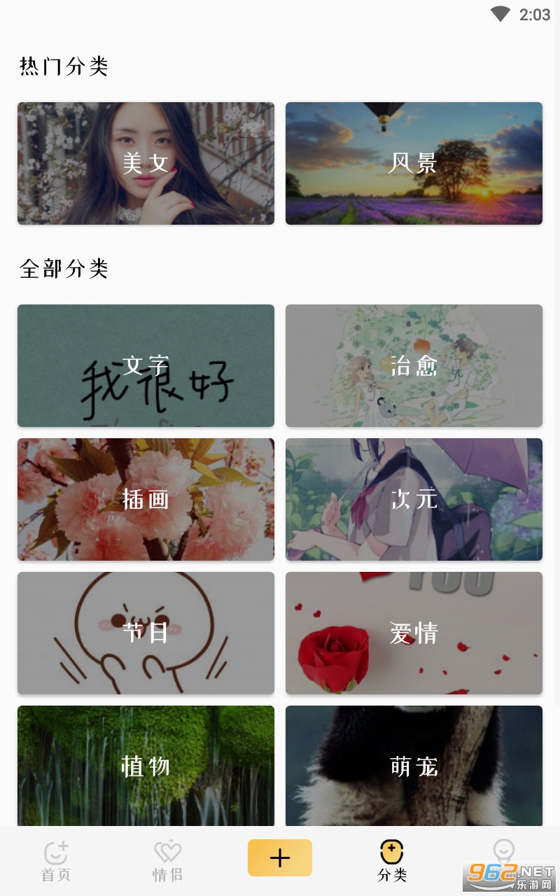 1、随时快速切换今日推荐、最新、最热、分类寻找属于你的壁纸。