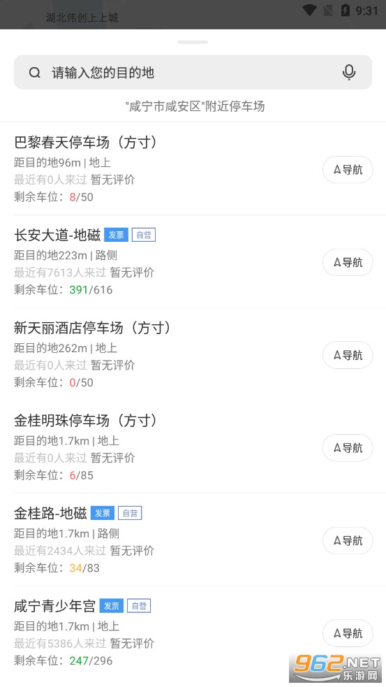 实用的停车软件,在咸宁的朋友可以试试这款软件,输入目的地可以查看附近的大量停车场和剩余停车位,让你出现更加的便利,快速找到停车位,有需要的朋友可以下载试试。