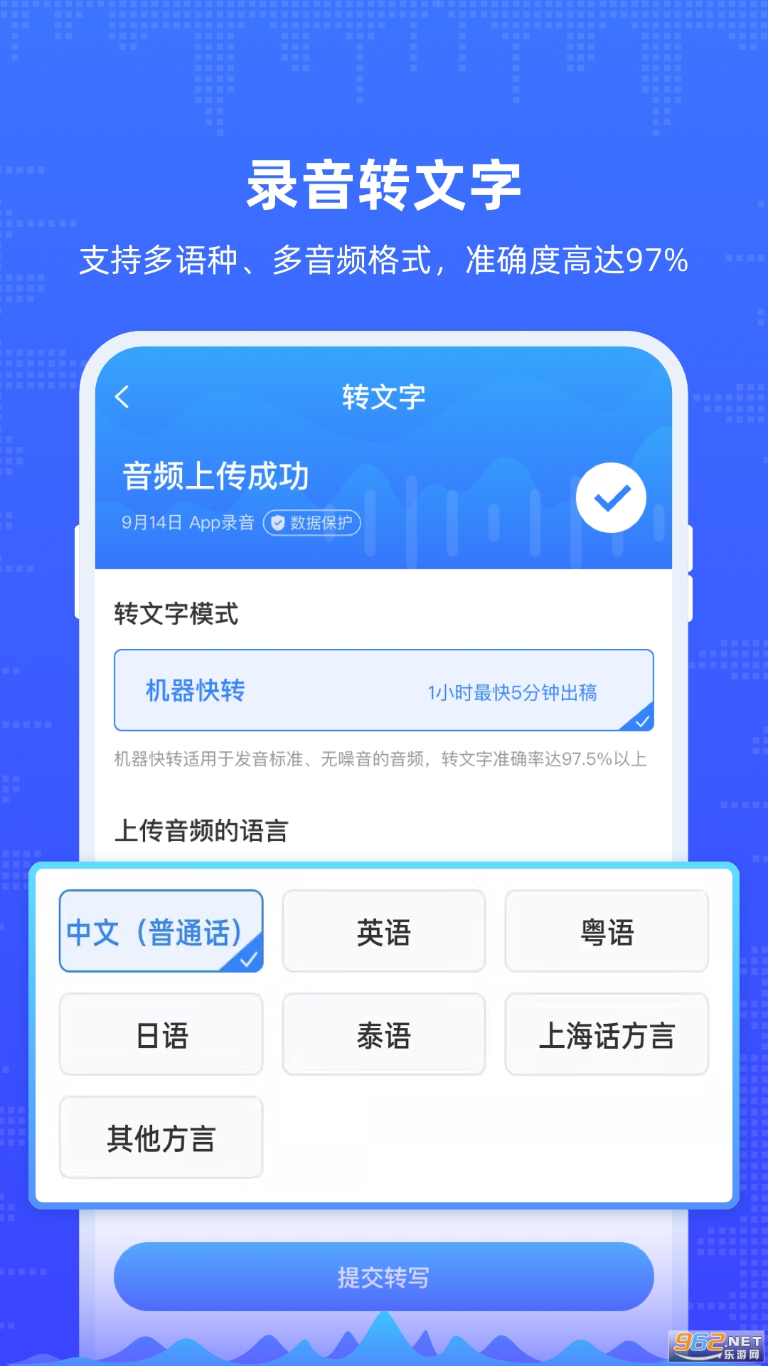 录音转文字:多语种、多音频格式支持,准确度高达97%,1小时录音最快5分钟出稿