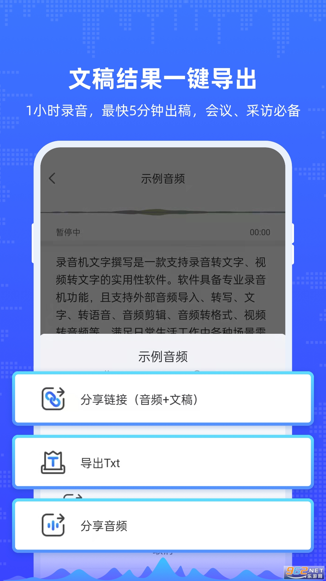 专业的录音软件,千万用户的选择,满足您不同场景下的录音需求!富有现代感的全新设计,让您录制和分享个人备忘,家庭时候,课堂讲座,工作会议,演讲和采访变得更加轻松。此外,它还可以帮助您转写文字,一键导出转写结果。