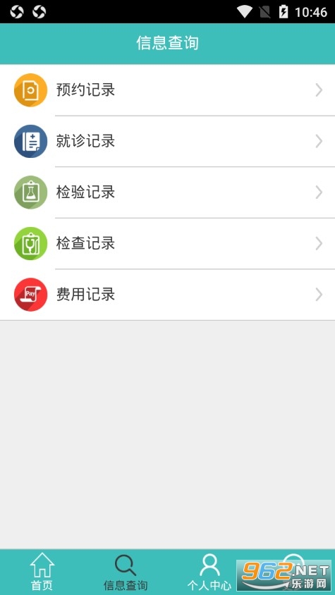 【信息查询】患者可以通过客户端轻松查阅自己的检验检查信息和体检记录信息,并且还可以查看预约记录、就诊记录和费用记录。