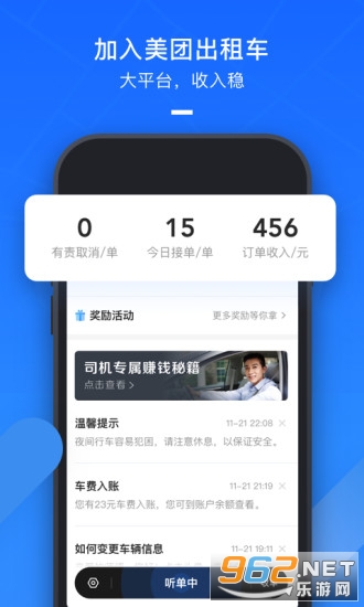 《美团出租司机最新版》是天津三快到家科技有限公司的一款出租车司机接单神器,通过这款软件司机师傅们能够与乘客们进行出行需求对话交流,了解乘客具体的出行需要。帮助出租车司机的师傅们更好的完成当日的订单数,在此之外也能够获得高额跑单收入。