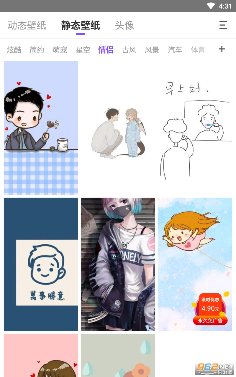 缓存:自动缓存您浏览过的壁纸,减少流量浪费,可一键清空,不占设备空间