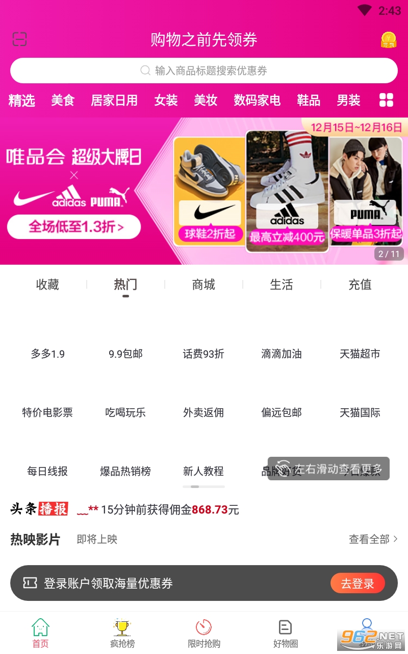 手淘优惠券APP官方软件,通过购物车下单可拿返利,超级实惠方便的手机优惠购物平台,在线登录轻松领取淘宝天猫内部大额优惠券,先领后买购物超级省钱!