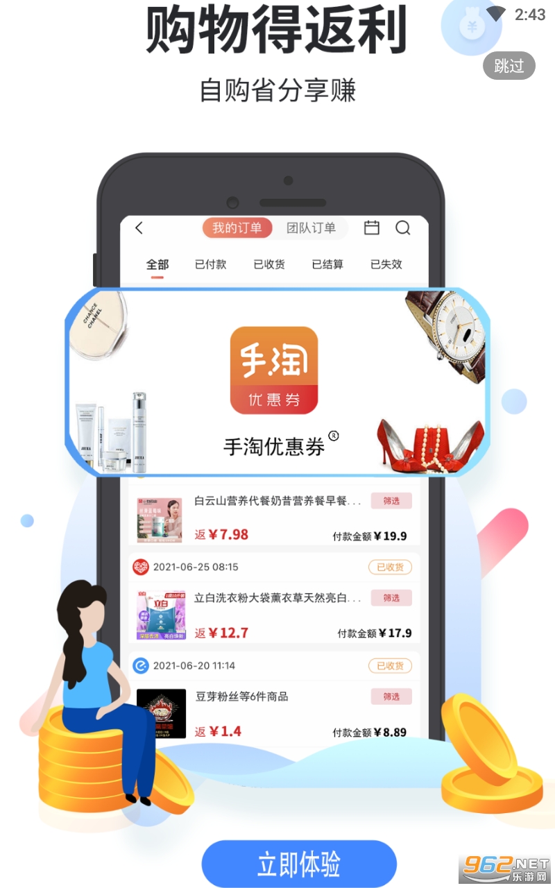 【公司权威】手淘优惠券APP,汇集淘宝,天猫海量返利商品,覆盖面广,返利额度高,官方渠道返利安全、准确。