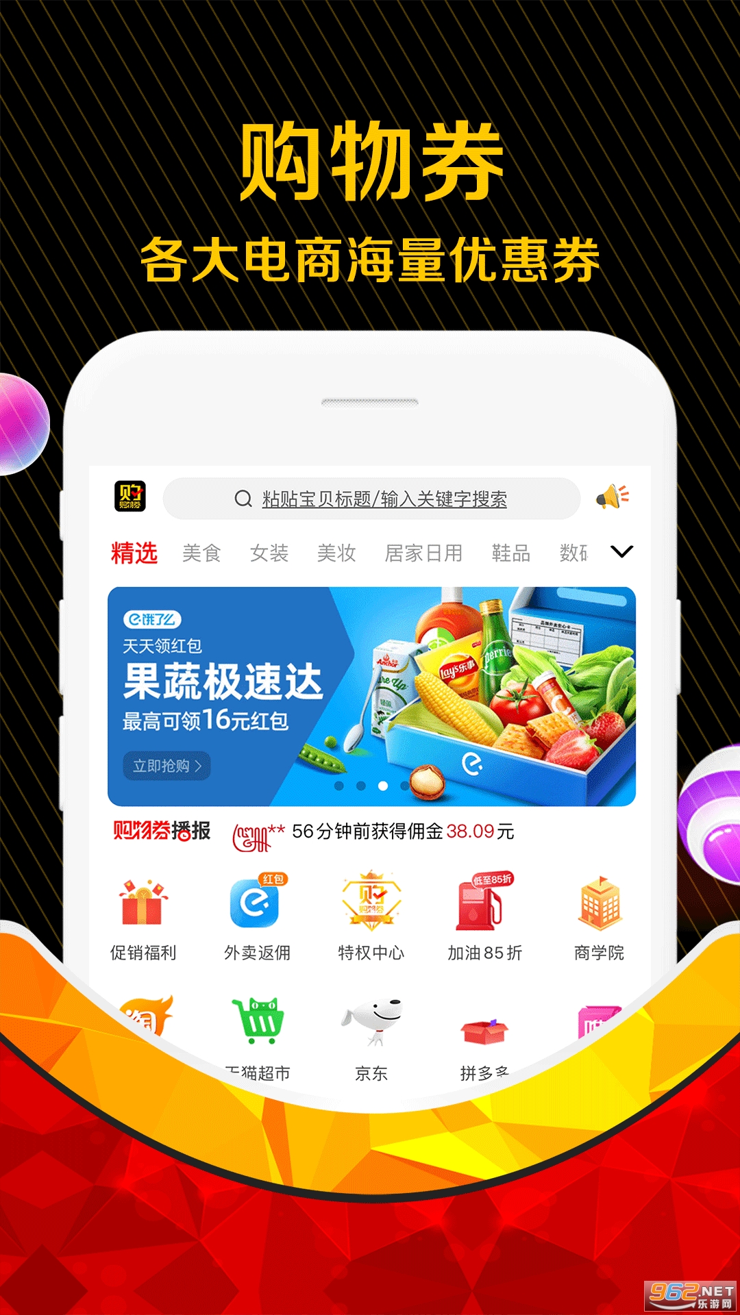 购物券是一家专业提供网购优惠券领取的APP,会员这里可以享受千万商品的优惠券,省下5%-80%的钱,还可成为代言人一起分销优质商品,获取销售分成。