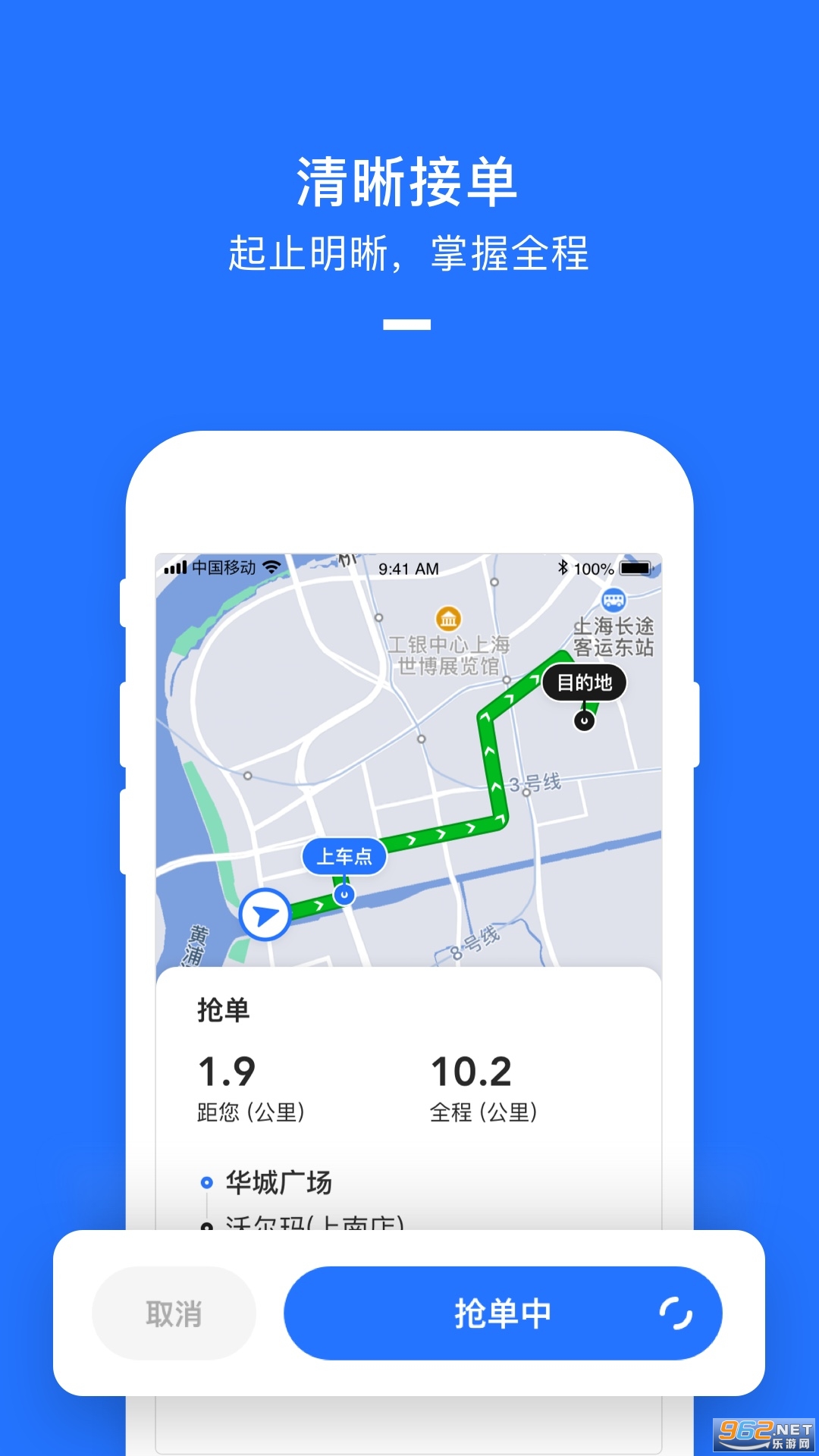 6.接单畅通:清晰播报用户上下车地点,抢单后马上致电,沟通无障碍。