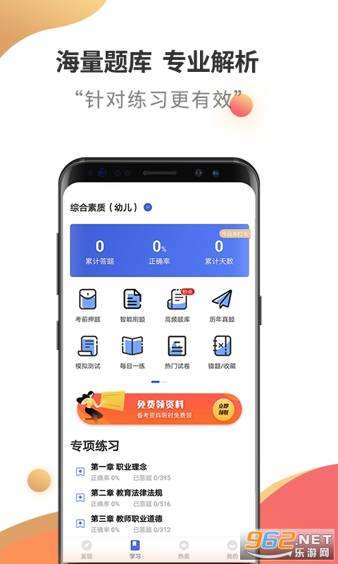 《教师资格考试云题库最新版》是一款非常给力好用的教师资格证学习平台,这里为用户提供了丰富的有关教师资格证考试的题库,帮助用户朋友们在线练习试题,而且都是免费的,感兴趣的朋友还在等什么?欢迎来962下载体验试试吧!