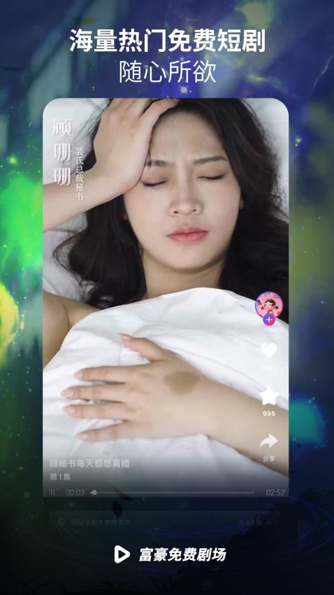 2、应用内绝大多数短剧资源均支持免费观看,无需会员或付费解锁,用户可以无负担地欣赏各类制作精良的短剧视频。