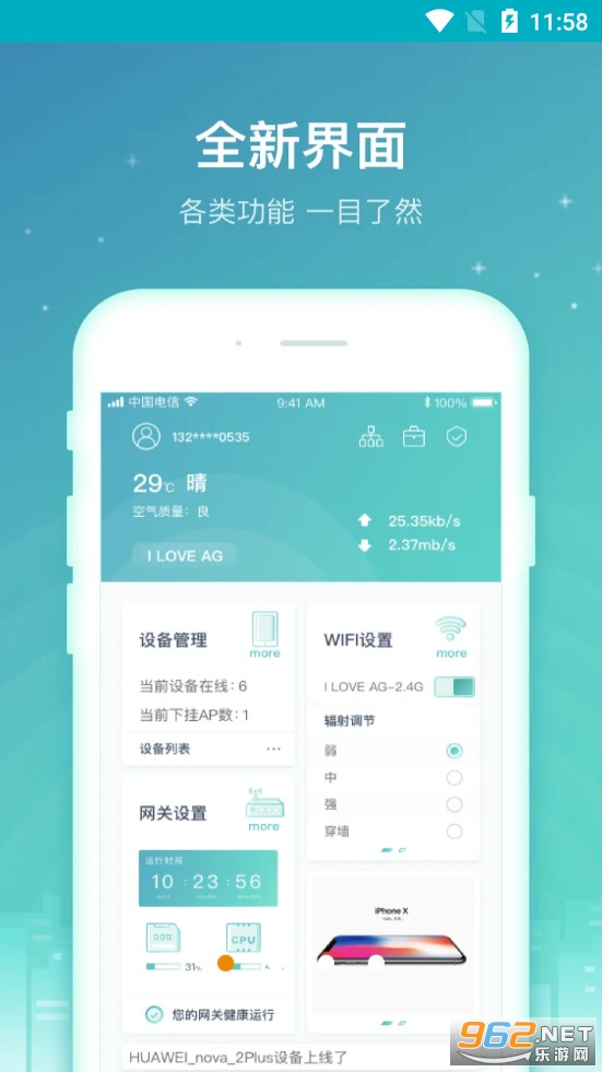 天翼网关管理软件,家里装了电信设备的朋友可以利用软件来管理路由器、光猫等,可以设置网关,设置wifi名字、密码、开启关闭等,有需要的朋友可以下载试试。