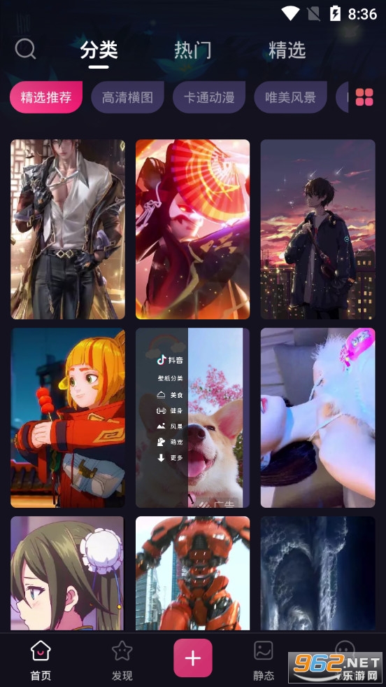 【分类-壁纸多】 炫酷跑马灯、情侣分屏壁纸、唯美治愈系风景壁纸、个性文字壁纸、专属姓氏壁纸、卡通动漫壁纸、游戏动态壁纸、影视人物壁纸、液态壁纸等应有尽有。每天更新10000+