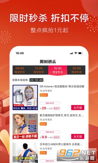 1、新人专享1元爆款秒杀商品,更有海量红包福利拿到你手软。
