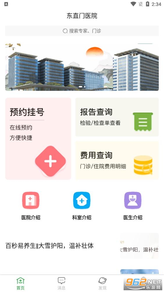 《东直门医院app》是一款非常给力的医院挂号软件,这款软件专为东直门医院设计,软件界面简洁明了,用户轻易看懂。让你一目了然的知道费用缴纳情况和病情详情,操作非常简单,感兴趣的朋友还在等什么?欢迎来962下载试试吧!