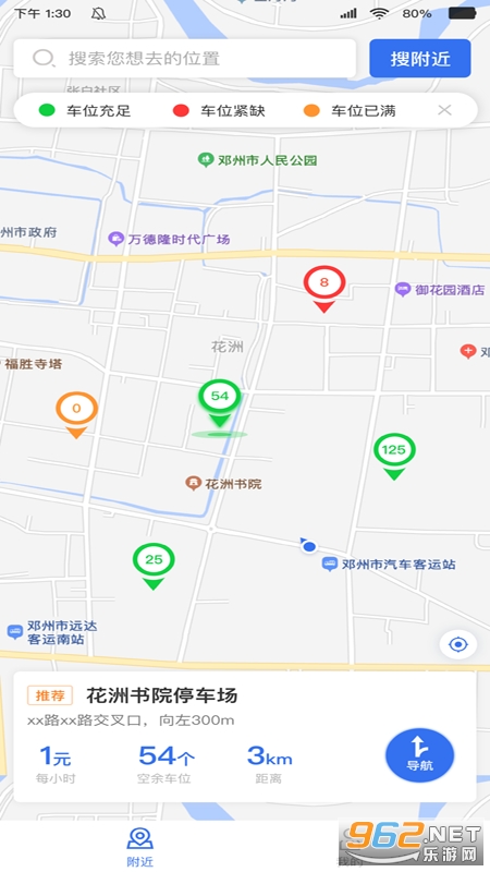 邓州停车是一款生活服务类的软件,通过APP可以看查询到邓州城区的停车场,实时的导航进行引导我们进行停车,非常的方便,不要担心找车位难的问题了,方便大家的日常生活。根据用户当前位置,推荐附件的停车场及详情,指引用户到达停车场停车。