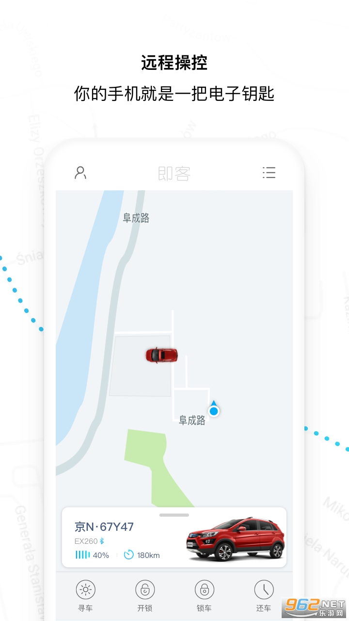一键预约车辆、寻车、控制车辆、还车,还车随意还到公共停车位。