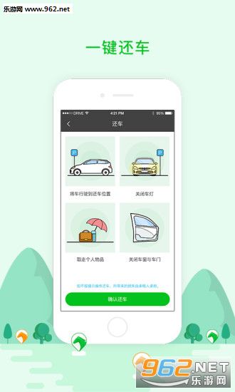 下载驾呗租车APP上传身份证件及驾驶证即可租车,手机开关车门及启动车辆,全程自助。
