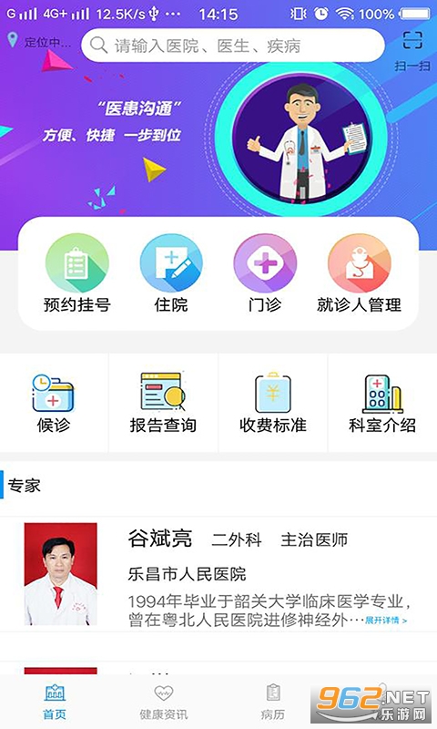 《乐昌医院app》给大家带来了一款乐昌医院app软件,大家可以在乐昌医院app中开启线上的医疗预约看病,让群众的生活更加的方便,打造出一款便民看病的平台,乐昌人民看病必备的app,下面就是小编为大家带来的软件下载地址!