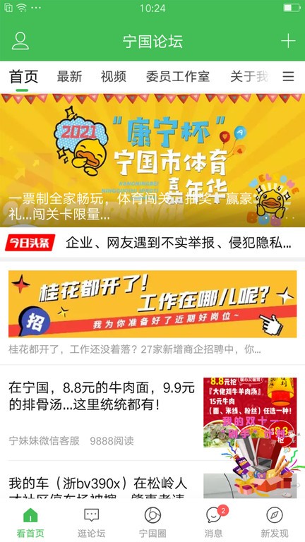 1、首先去应用商店搜索宁国论坛并下载安装,完成注册登录后就能打开看到丰富的本地新闻和热点资讯了。