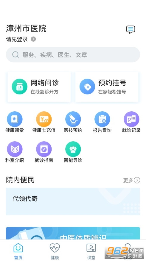 漳州市医院是一款掌上便捷预约医院挂号的医疗服务软件,漳州市医院公众端将医院信息系统整合延伸到手机,形成一个高效、实时、动态的医疗信息交互平台,为患者提供便捷的就诊服务。