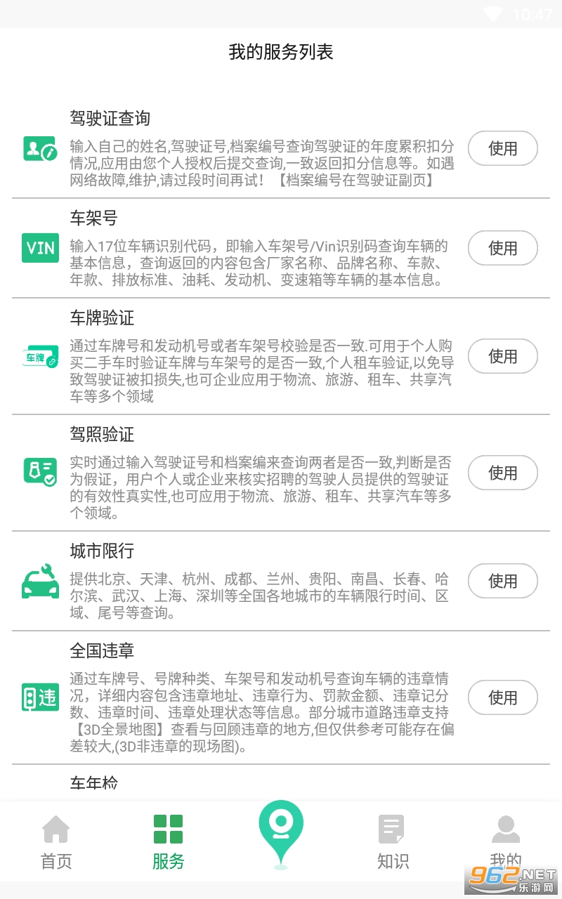 总体来说是一款非常不错的用来查询驾驶证信息的工具,用处非常的广泛们,查询积分以及在购买二手车时可以做好估算以及车辆信息的核查,喜欢的亲们赶紧下载吧。