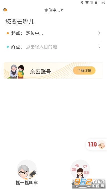 2、巅峰传统的打车方式,为老年人提供最热心的一键服务;