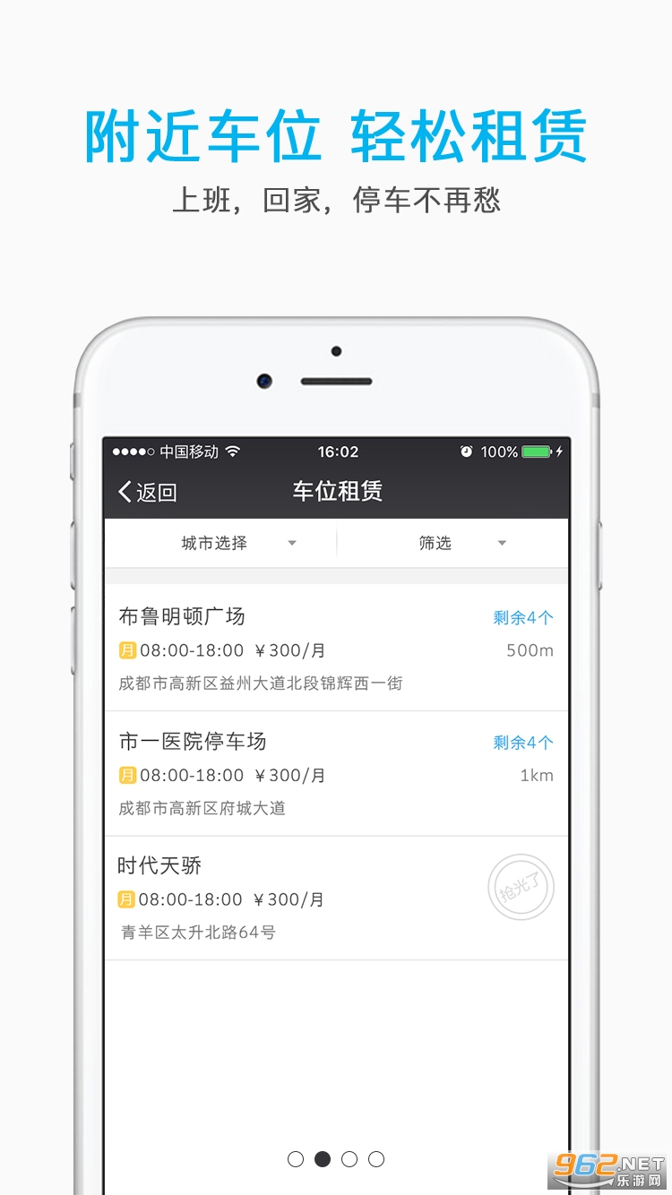 “e泊车”是一款专为驾车一族提供便捷、准确、可靠的停车服务的手机软件,可实现自有车位的错时出租,周边停车场车位的查询、预约、导航、车辆入场后的防盗,停车费的手机支付,停车场内找车等功能