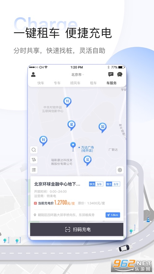 一键预约车辆、寻车、控制车辆、还车,还车随意还到公共停车位