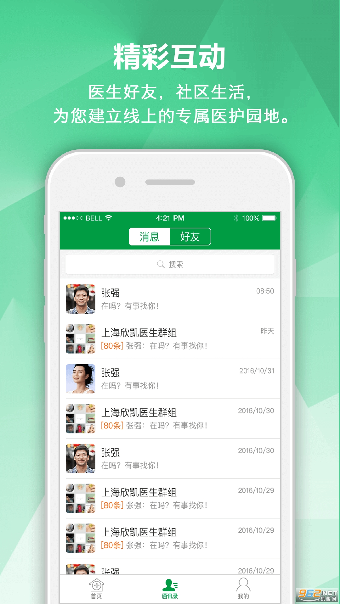 通讯录:在线与好友聊天,与群组成员互动交流;