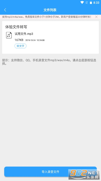 在免费的录音转文字软件当中,所有的语音内容都必须在一分钟以为,除此之外软件还支持wav、mp3、m4a等多种音视频的文字转换,欢迎各位点击下载链接安装使用!