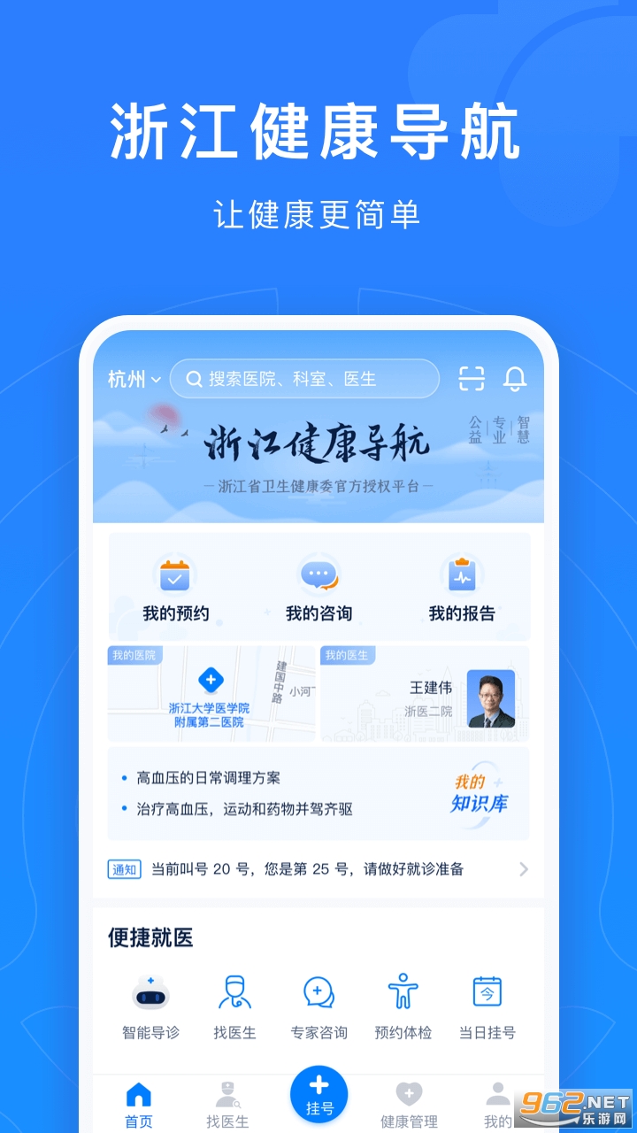 浙江省预约挂号(浙江健康导航)手机客户端,依托&39;浙江省预约诊疗平台&39;及已接入的全省近500家重点医院,预约挂号客户端可以预约省内超过一万余名医生专家的号源。客户端提供预约挂号、退号、就诊日前一天短信提醒等多项服务。