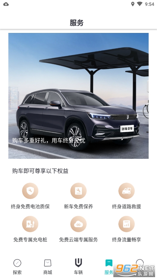 专为创维汽车用户制作,拥有探索,商城,车辆,服务等内容板块;