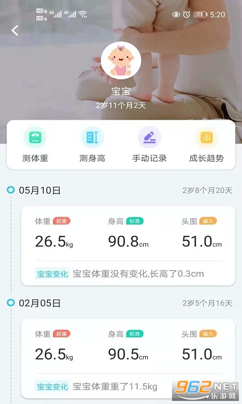 【婴儿模式】简单快捷的婴儿测量模式,记录宝宝每天成长