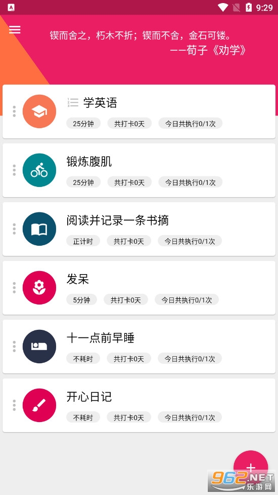 一款非常不错的打卡提升软件,将自己的目标转化为一个个打卡功能,每天努力的完成它,每天看到自己的提升,充分应用自己的时间,达成自己的目标和任务,同时还有着丰富的记录和列表可以选择,软件的功能丰富,推荐给有需要的用户下载。