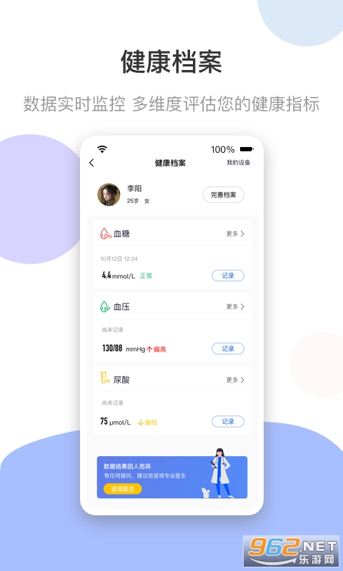 专业健康咨询:隐私保护,健康顾问和医生共同全方位管理用户的健康。