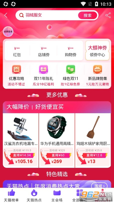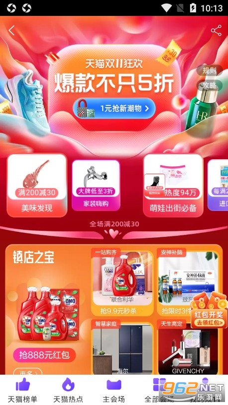《手机天猫》是阿里巴巴旗下的电商购物优惠软件,在这里购物可以享受各种天猫福利,各种优惠活动参与,免费领取优惠券、折扣劵、抵用劵等等,帮助用户们在购买商品时减掉不少钱。除了有大力的优惠活动之外,手机天猫的商品更值得放心,全部都是官方正品商品,不存在买到假货。