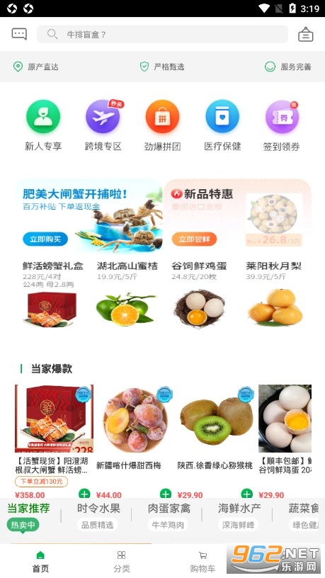 该软件由优质生鲜电商平台于2016年建立,涵盖果蔬、海鲜、肉蛋等,确保用户购买的是最新鲜的,致力于为用户提供高品质的生鲜商品,有四项全额补偿服务承诺,平台上的所有新鲜商品都由顺丰邮寄。