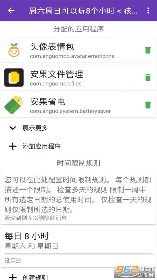 此外,您可以配置时间限制规则。这些规则将总使用期限限制为一天或几天(例如一个周末)。例如,可以将两者结合。结束日,每周2小时,但总共只有3小时。