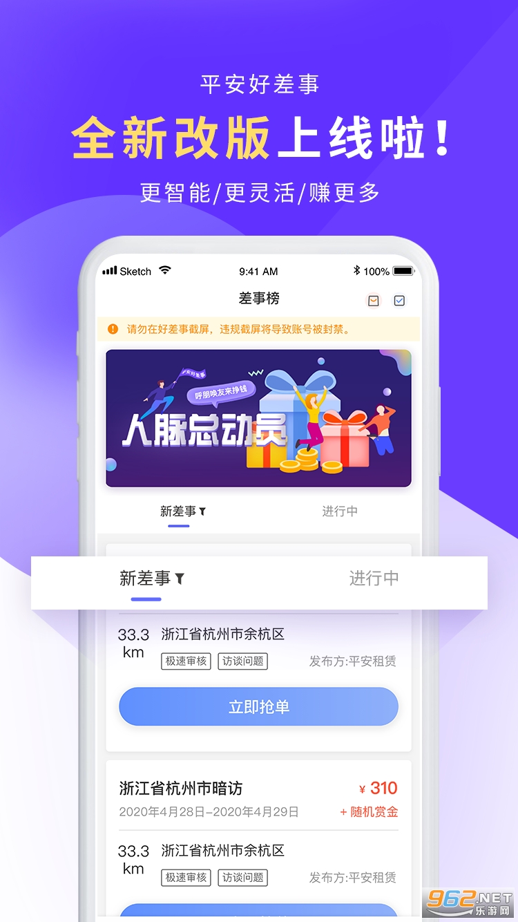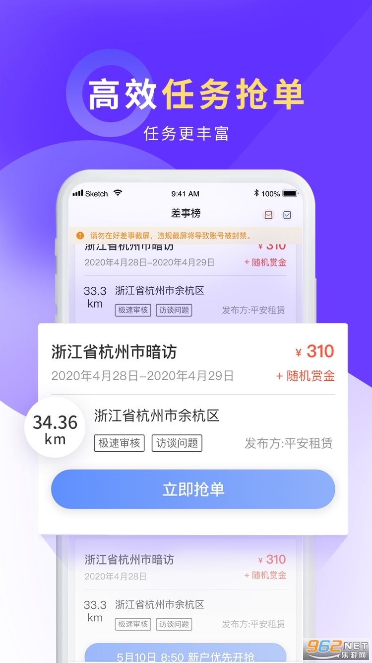 用户可以通过该平台发布任务、抢单、执行任务。直接在平台上填写调查报告,办事效率大大提升。每天都会有各种兼职任务,快速抢单赚钱,每天注意平台发布的任务,千万不要遗漏重要任务。