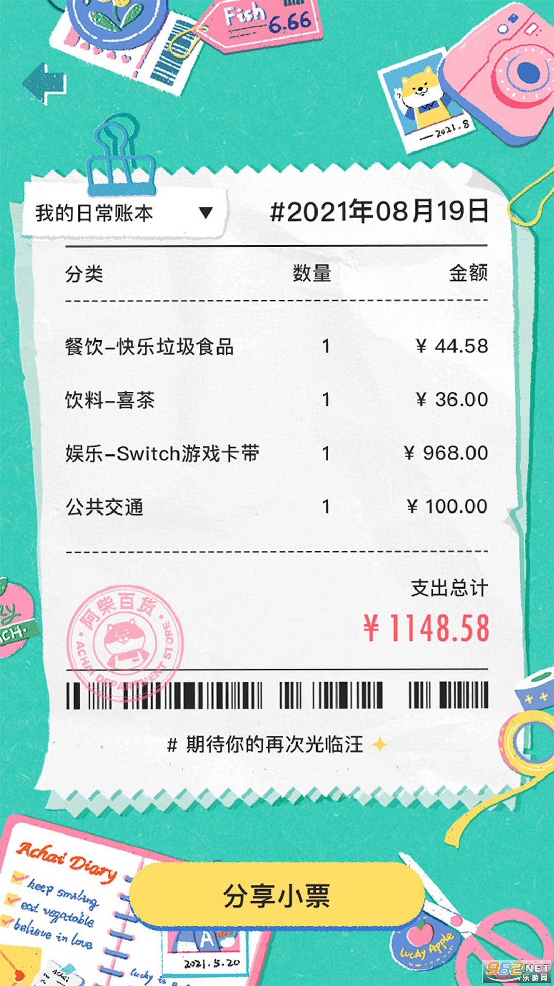 【小票账单】进入首页自动打印今日消费小票,记账也有仪式感