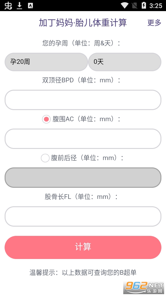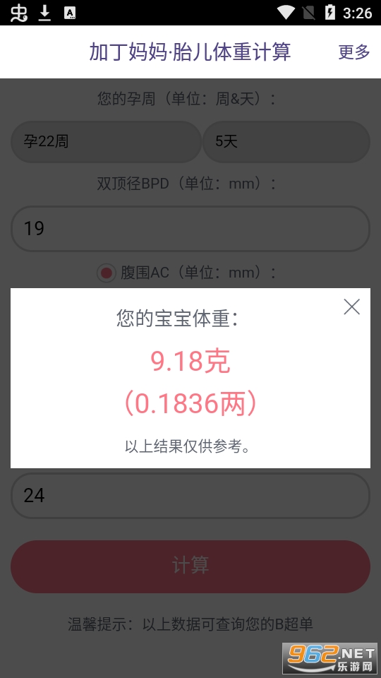 想知道宝宝在肚子里有多重吗?只需输入您B超单上的数据即可计算宝宝的体重!