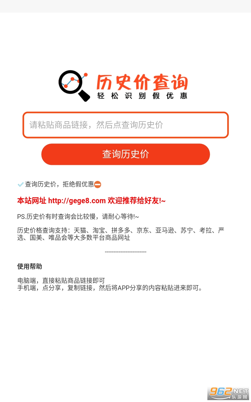 《历史价查询软件》是一款非常不错的双11购物的小帮手哦,有了这个软件你能查询商品的以往价格,来对比价格就知道是不是真实的优惠了。谨防上当的好帮手。app上操作需要去对应的购物app分享复制商品链接然后进行查看,感兴趣的亲们赶紧下载吧。