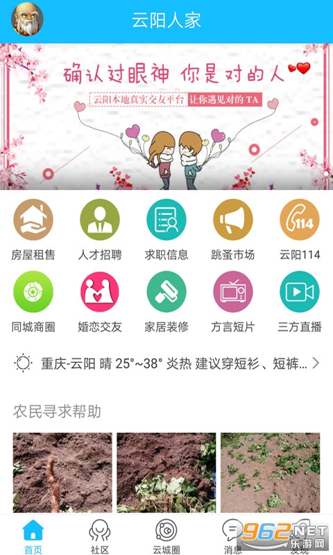 云阳人家客户端可以让您及时了解云阳本土资讯,房产信息,企业商家黄页,招聘求职、征婚交友、二手信息等信息,重庆云阳网络人气和影响力的社区!
