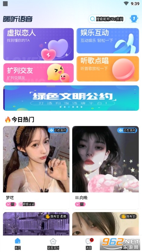 《暖听语音》是一款很多年轻人都在使用的语音聊天软件,开启你的语聊派对,去认识更多有话题的同龄人,可以一起游戏连麦,也可以开房间一起聊天唱歌,在工作学习之余放松放松,还能结交到更多朋友。只要你够主动就能有属于自己的故事。