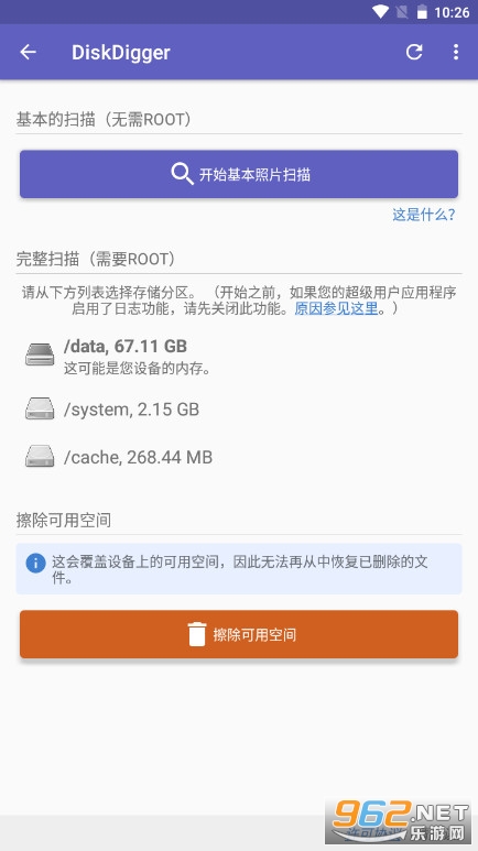 《diskdigger安卓中文版》是一款超级好用的手机数据恢复工具,在现代日常生活当中我们常常会在手机中存储许多重要的资料,一来是方便随时查看、二则是会在手机中的云盘软备份下来。但有时在清理手机垃圾的时候,不小心连带着把这些资源都清理掉了。在安装了数据恢复diskdigger软件以后,再也不用担心误删数据的情况了!