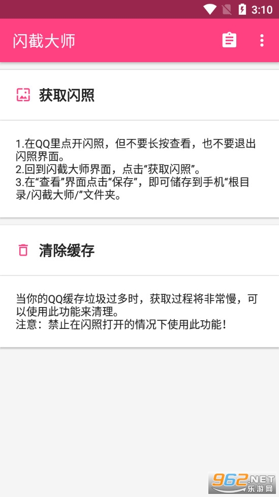 闪截大师是一款能够一键获取手机闪照的强大APP。轻量级应用,精简UI设计,让闪照玩法更加精彩!